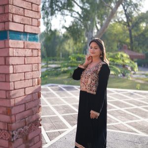 Black Traditional Embroidered Frock – 3 Piece